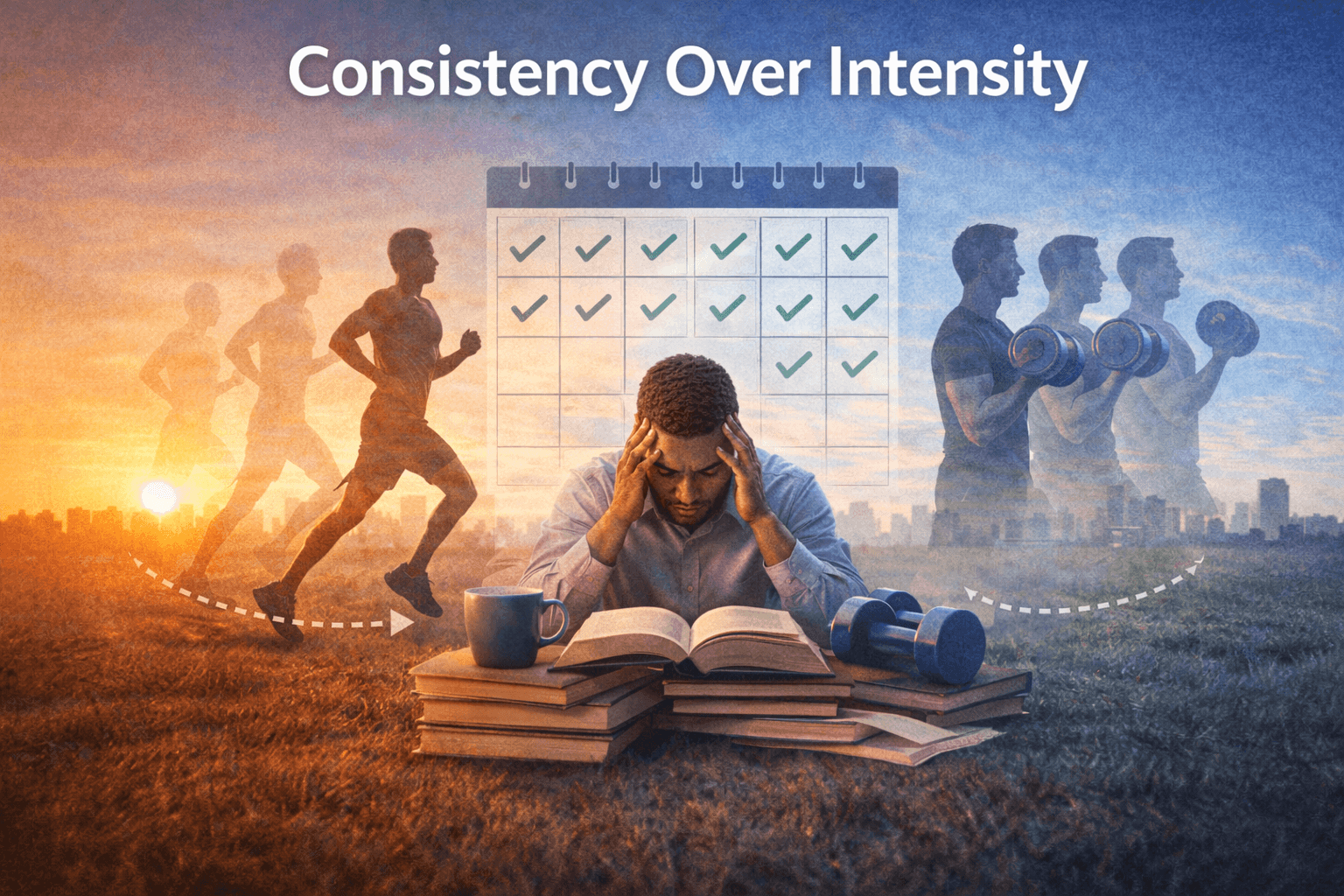 Why long-term adherence matters more than short bursts of motivation, with examples drawn from training, learning and lifestyle habits.